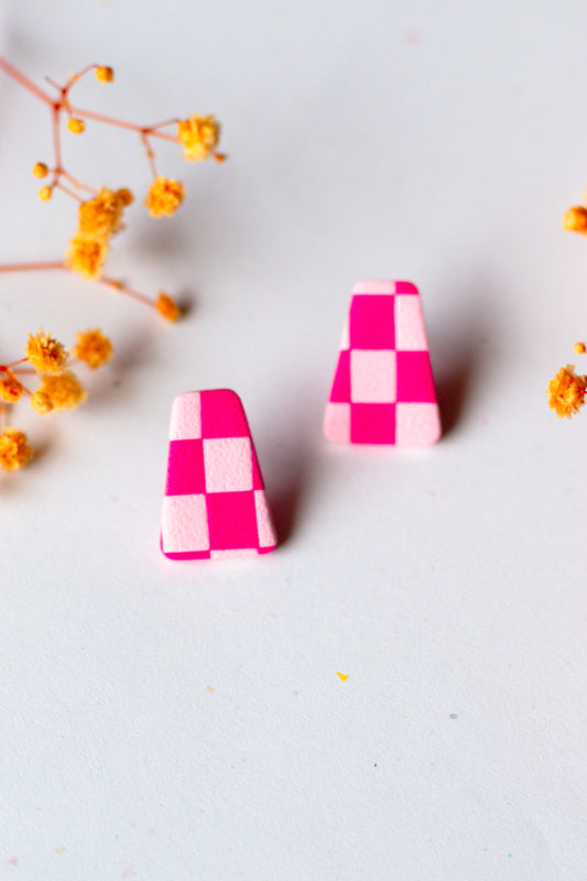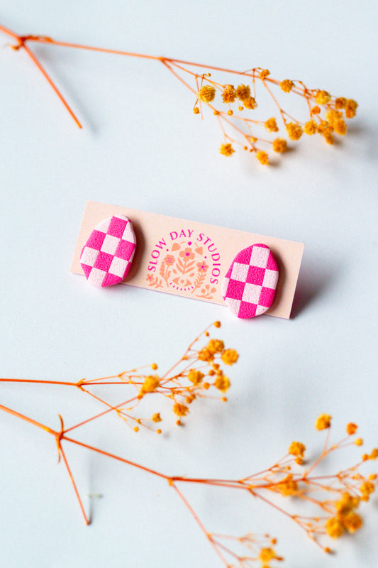 Checkerboard Organic Oval Stud // Pink Monochrome