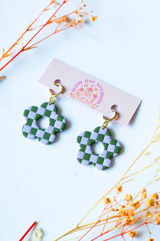 Checkerboard Flower Huggies // Pastel Purple & Olive