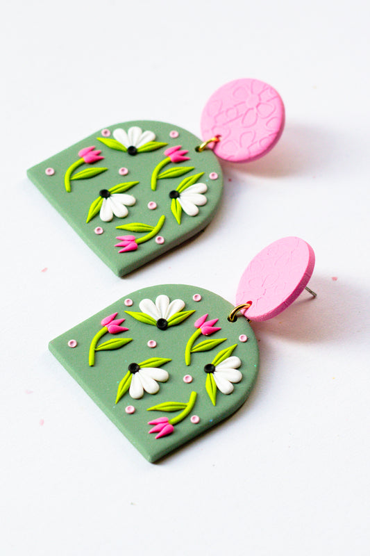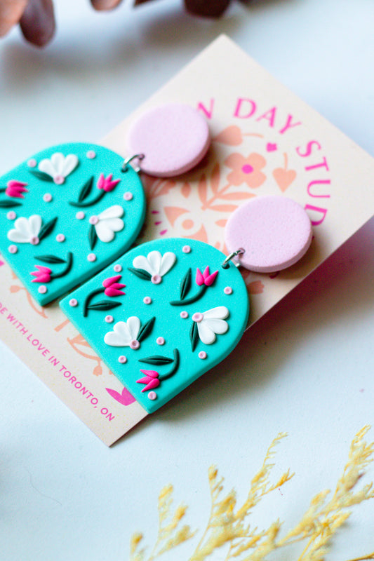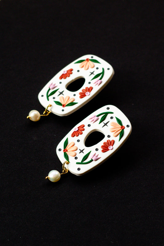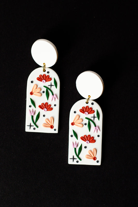 Autumn Floral Polymer Clay Arch Dangle Earrings