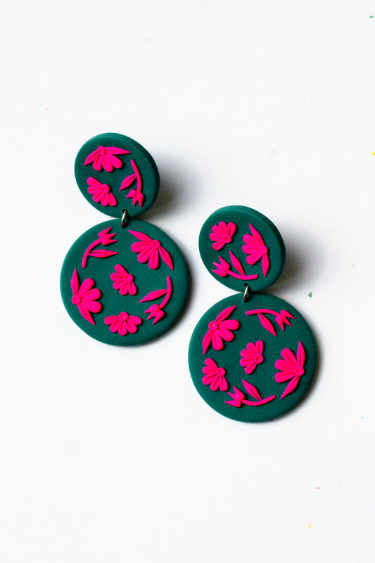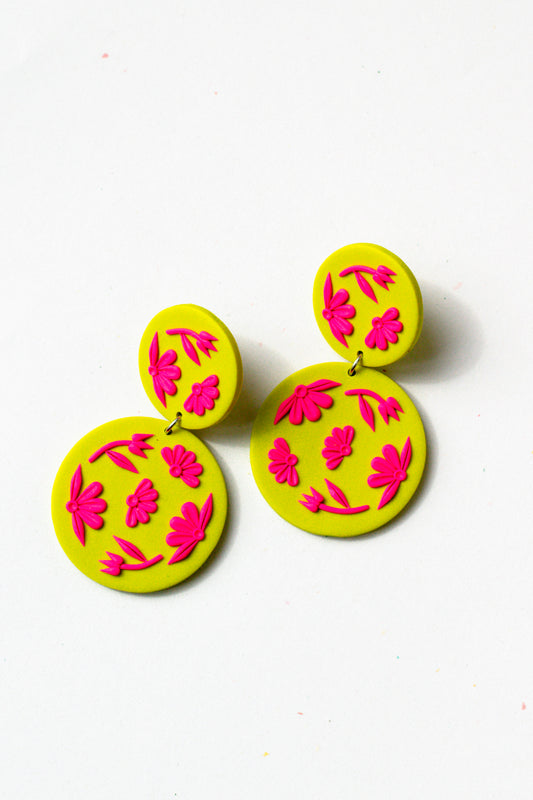 Flora Polymer Clay Dangle Earrings // Chartreuse