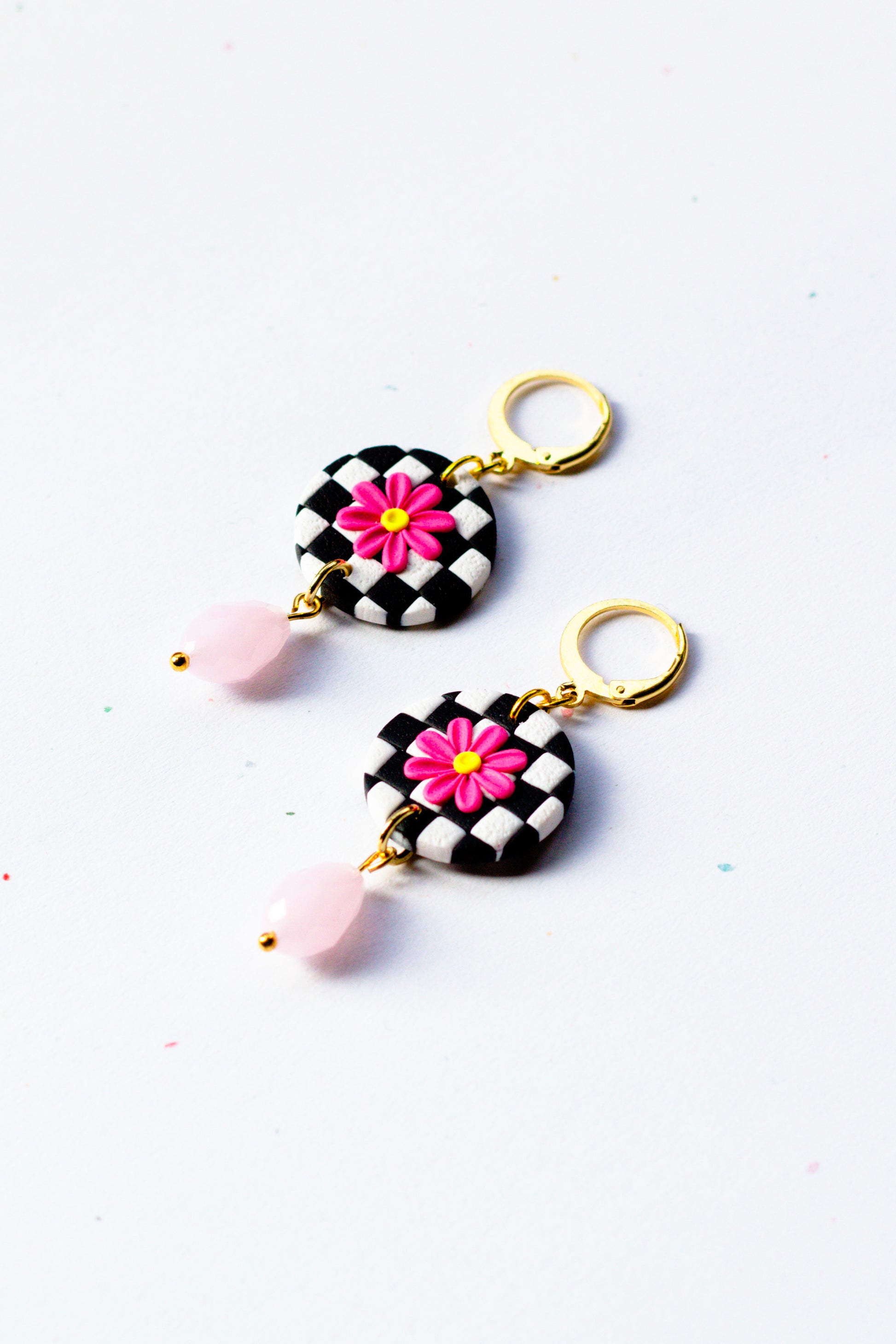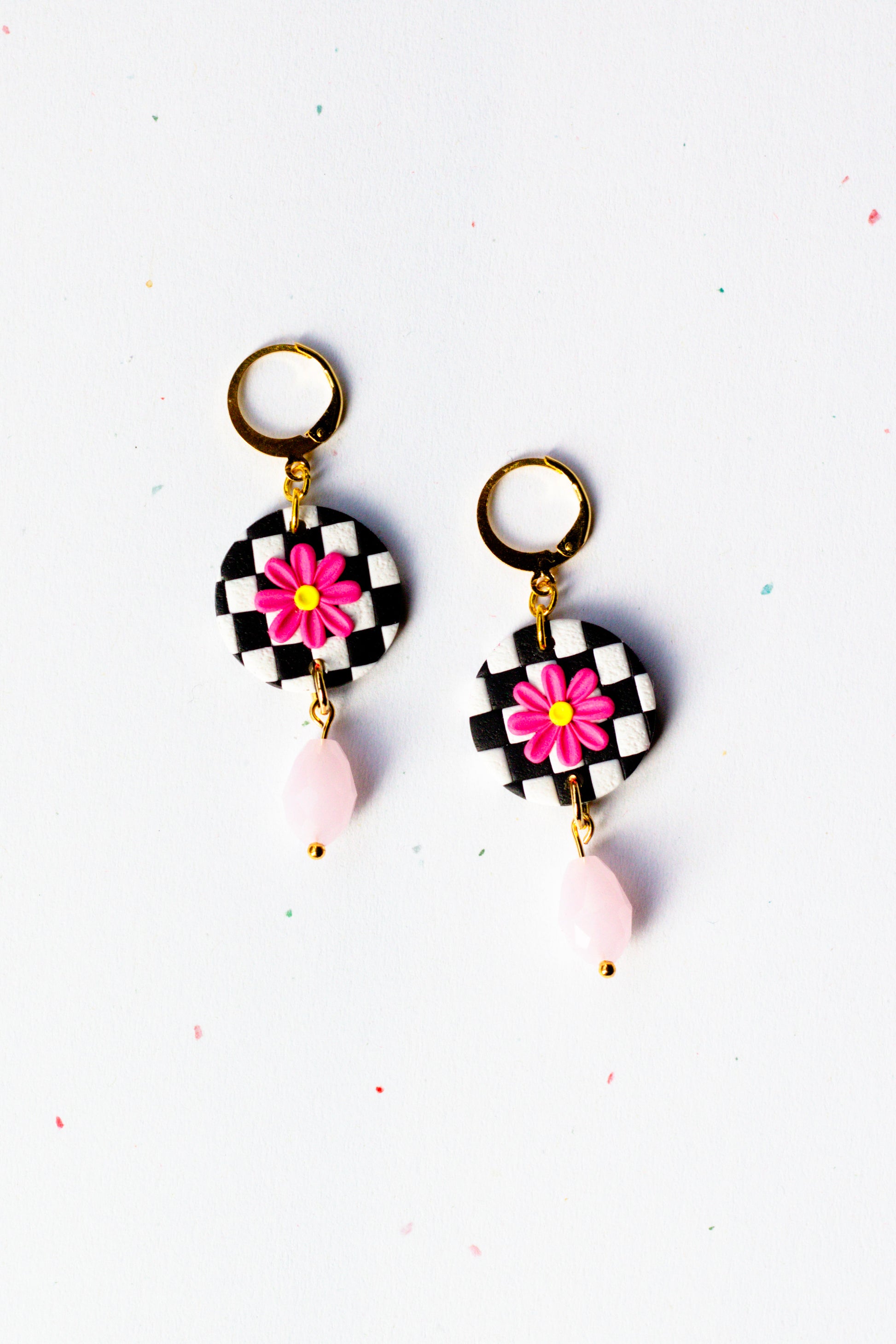 Looking for earrings that scream "fun and funky" while staying totally wearable? These circle checkerboard daisy huggies are like a retro garden party for your ears—bold, playful, and lightweight enough to keep you dancing all day. Perfect for when you want to turn heads and spark conversations like, “Where did you get those amazing earrings?!” 🌼♟️✨