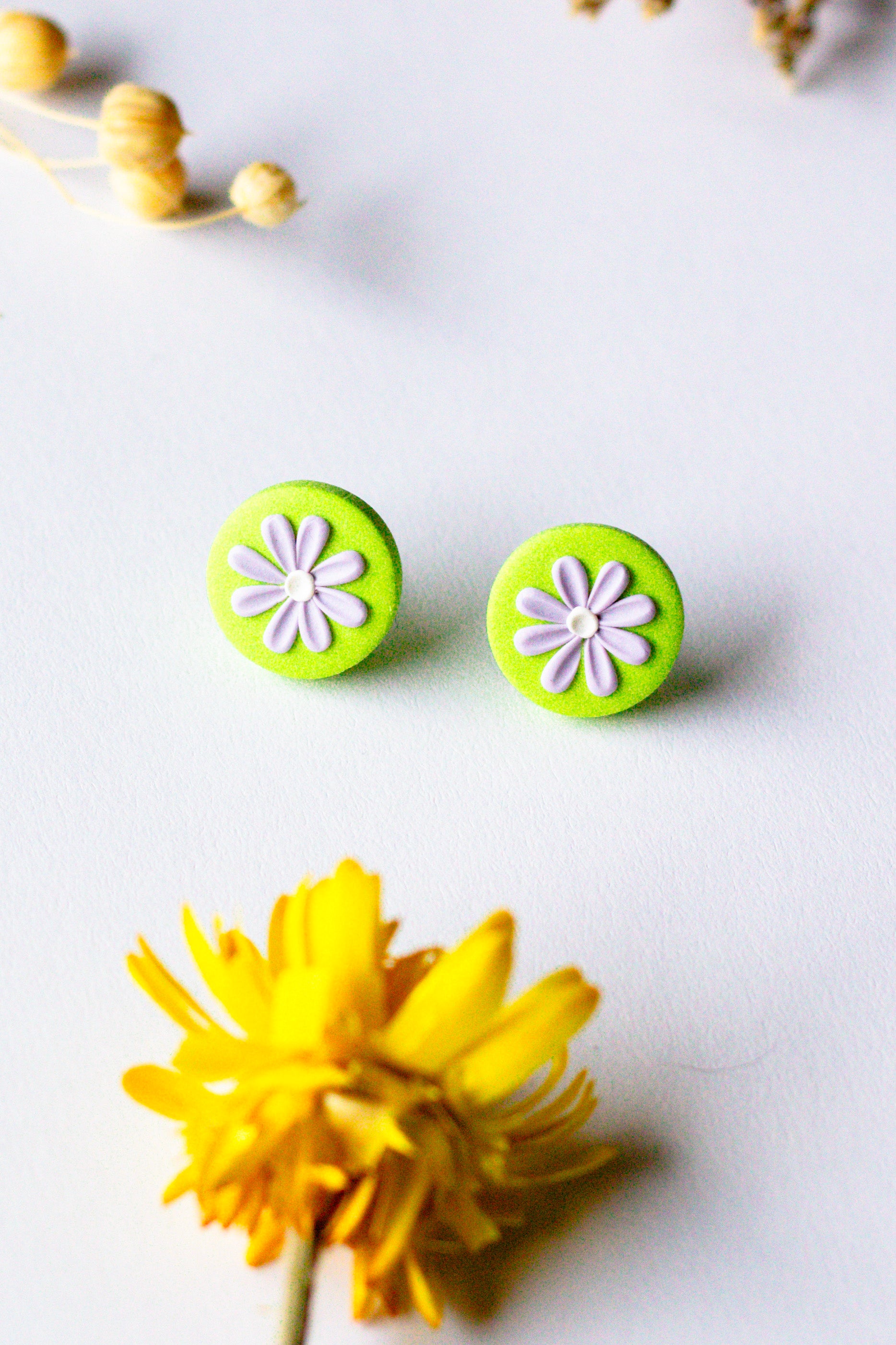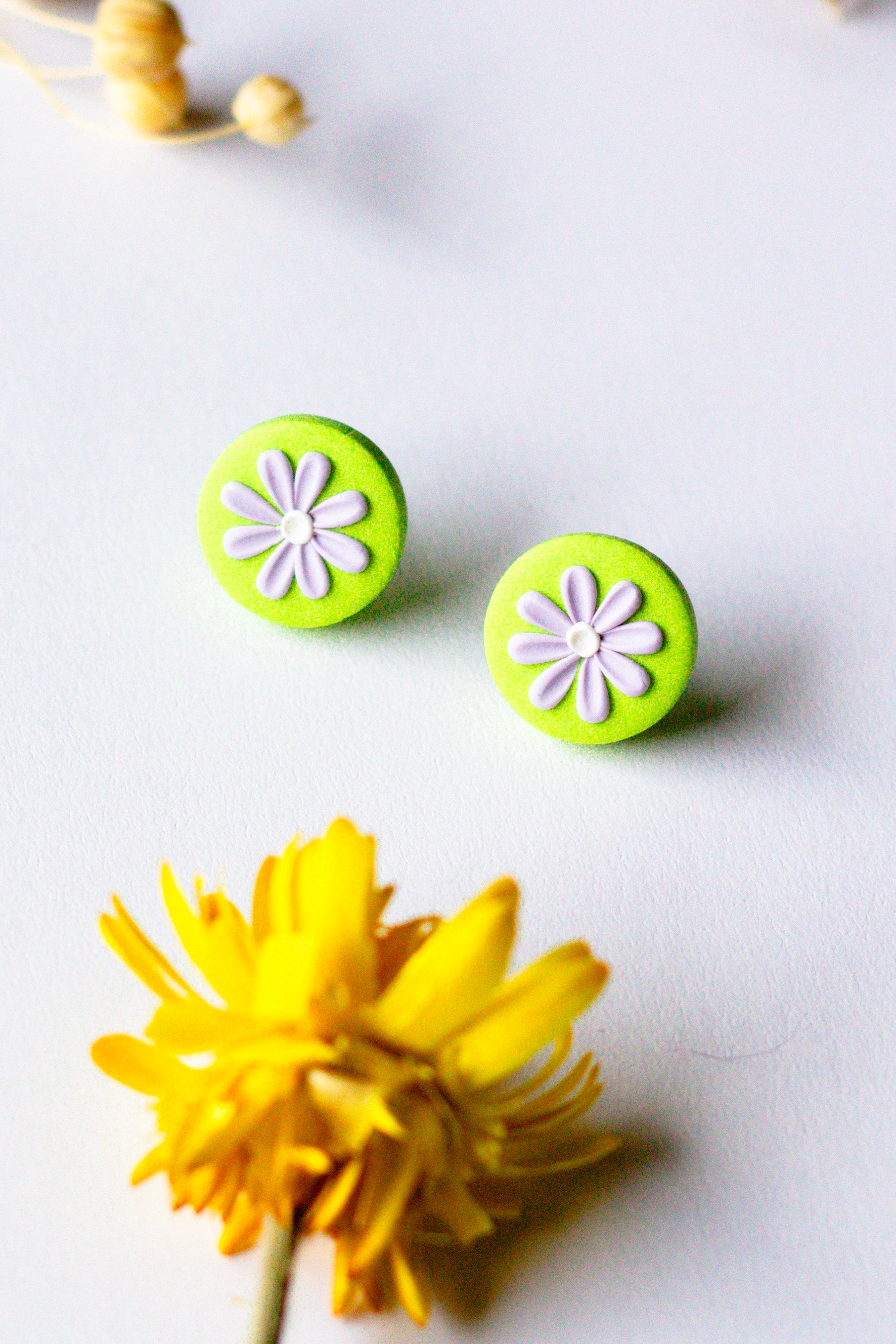 Mini Daisy Stud - Pastel Green + Purple