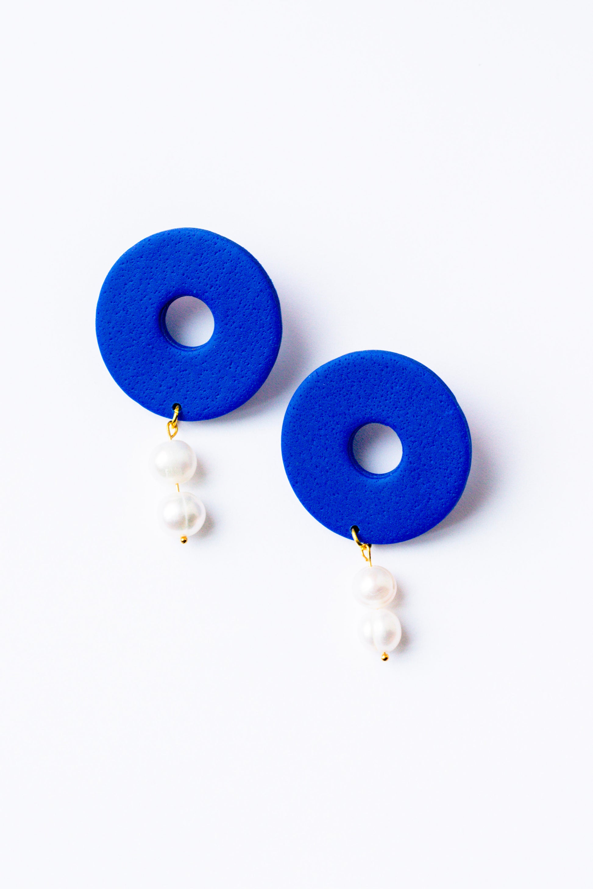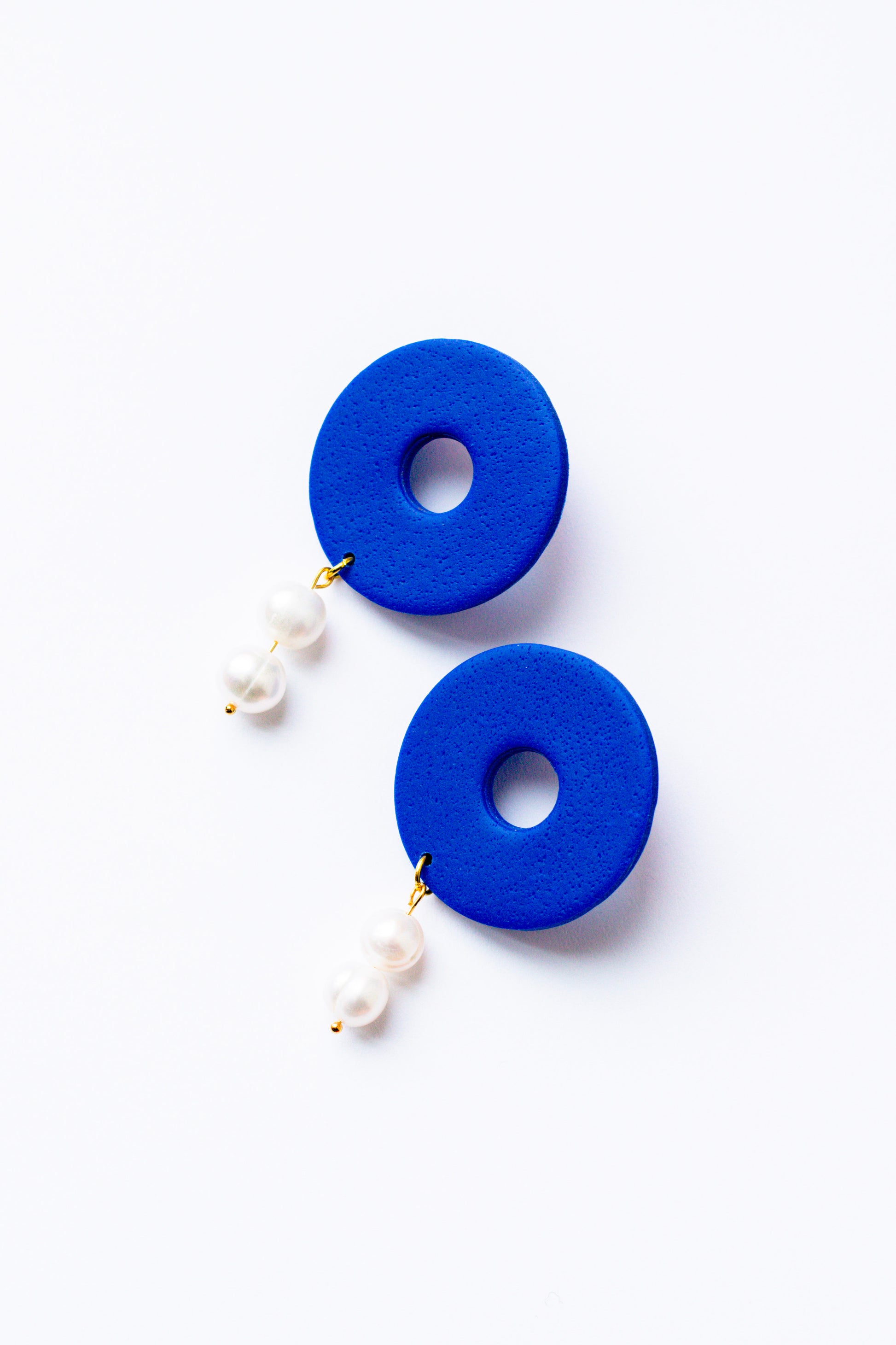Polymer Clay Donut Statement Stud with Pearl Accents // Cobalt Blue