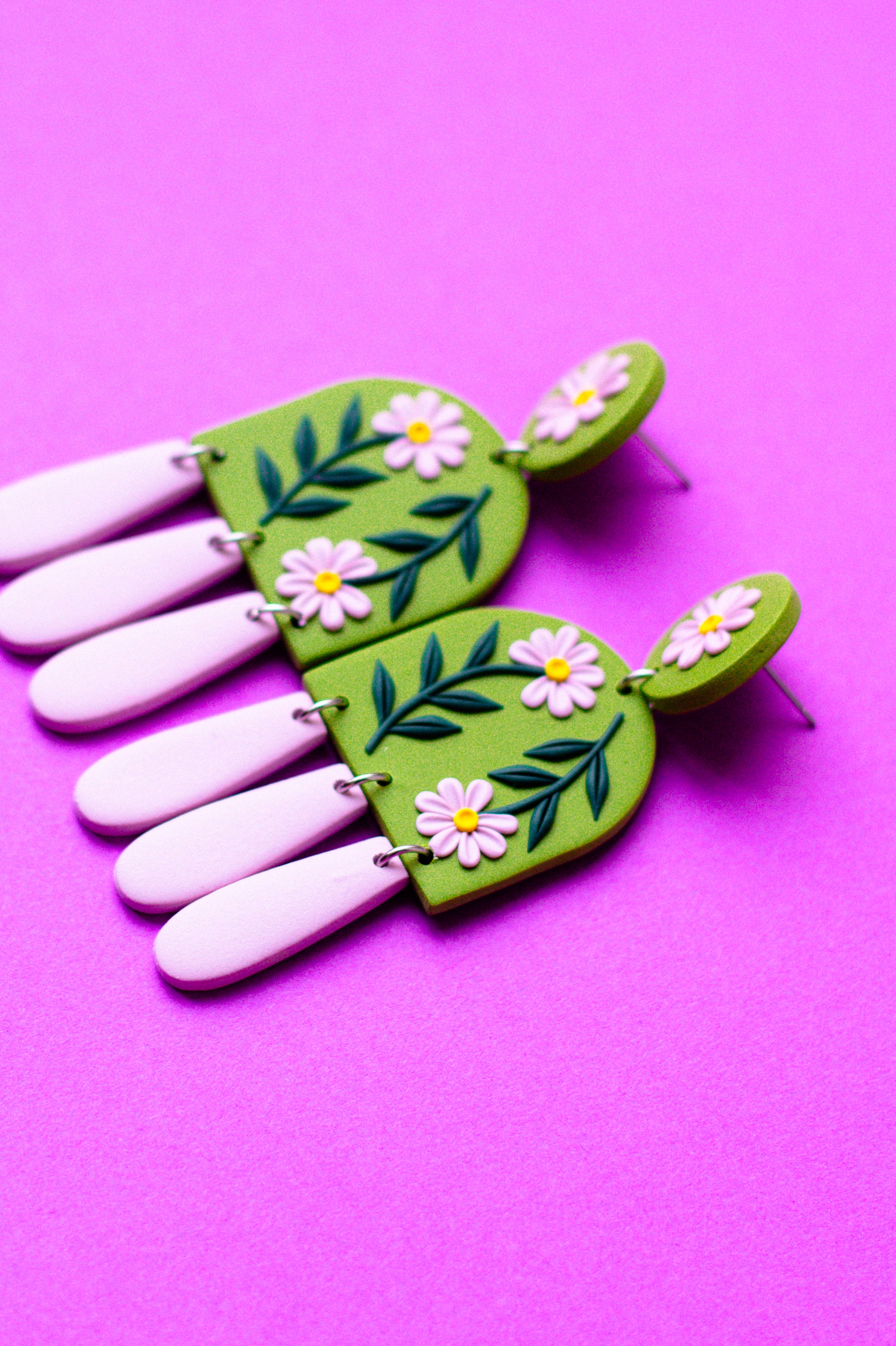 These light olive green, floral polymer clay earrings are the perfect pair to rock this autumn! Carefully crafted all by hand lovingly each petal at a time, they are lightweight, comfy and make a big impact.