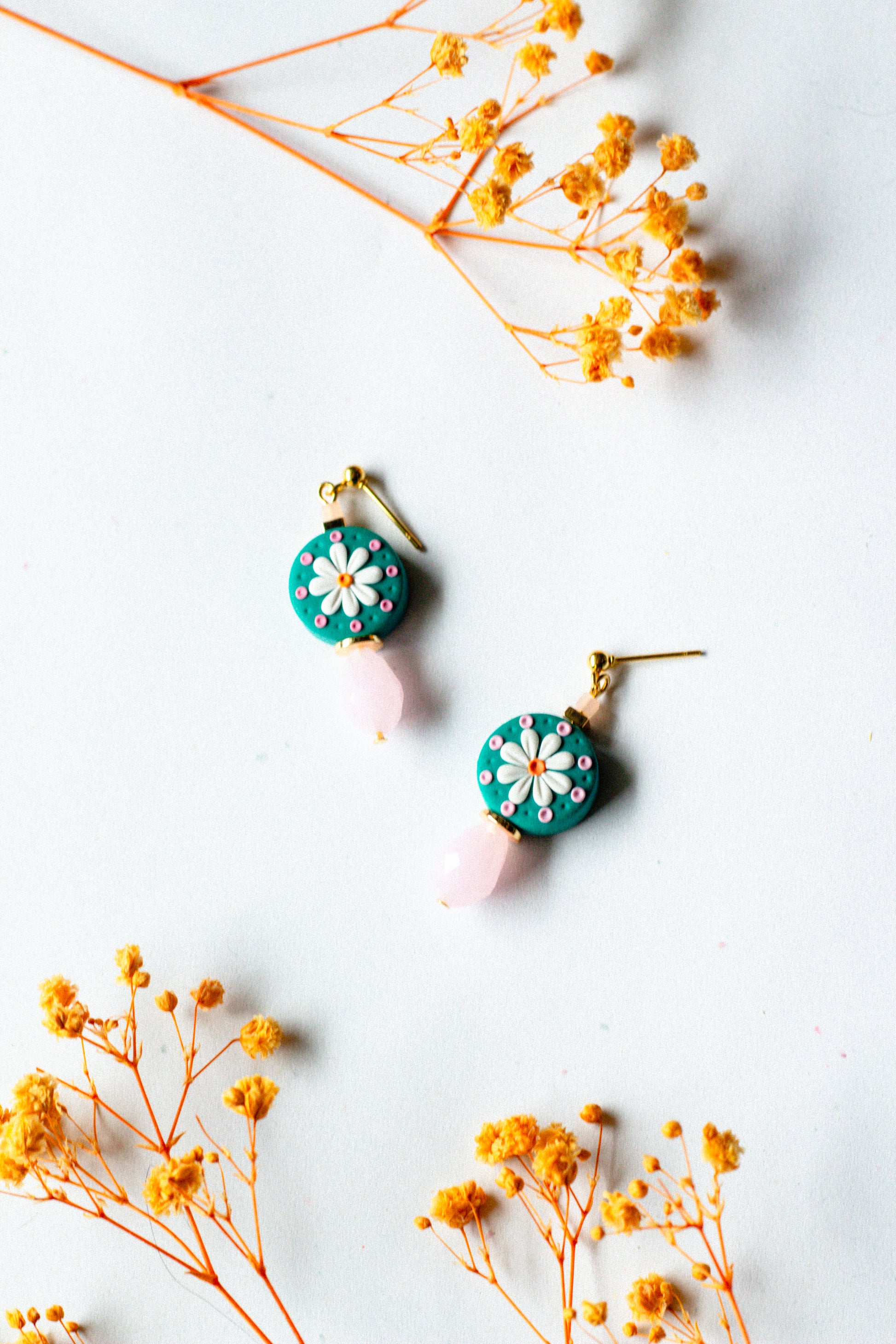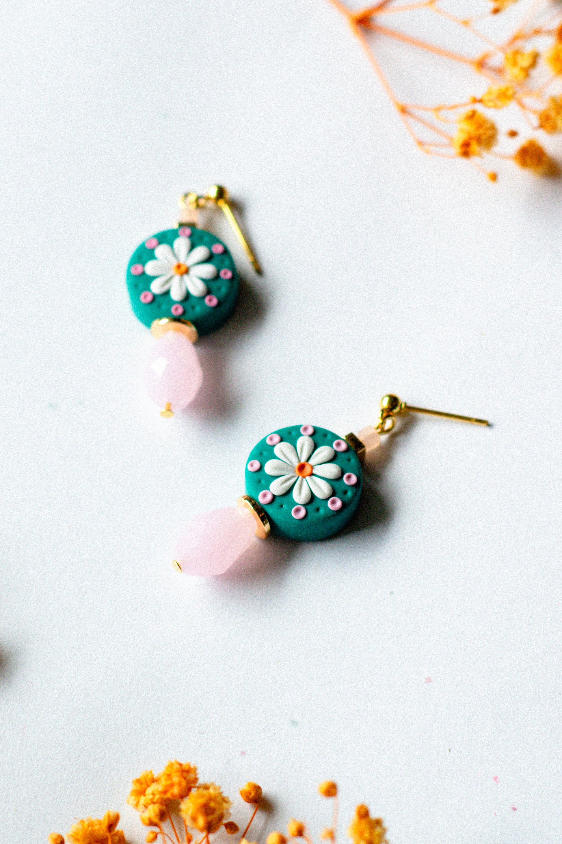 Daisy Beaded Dangle Earrings - Teal