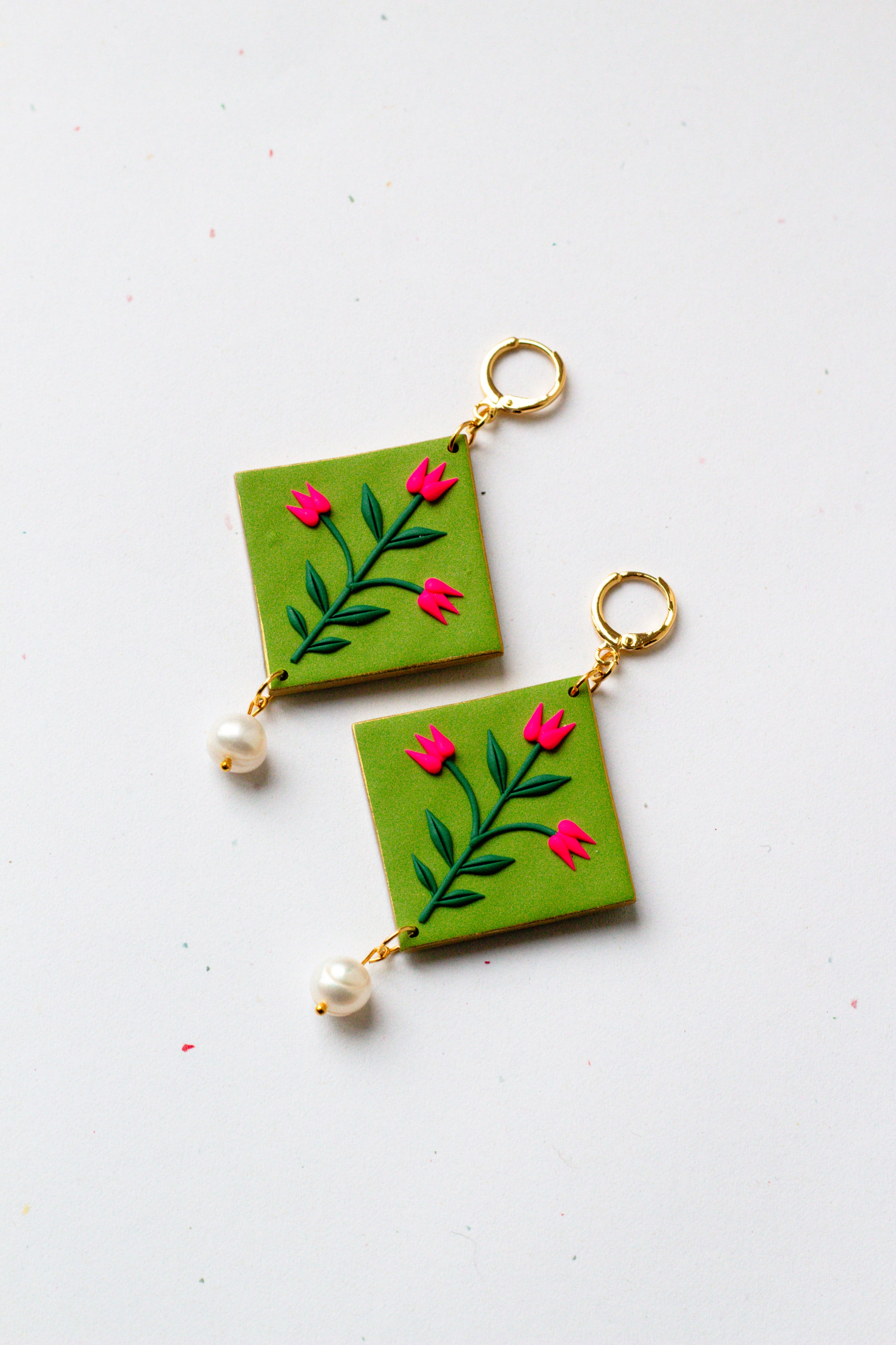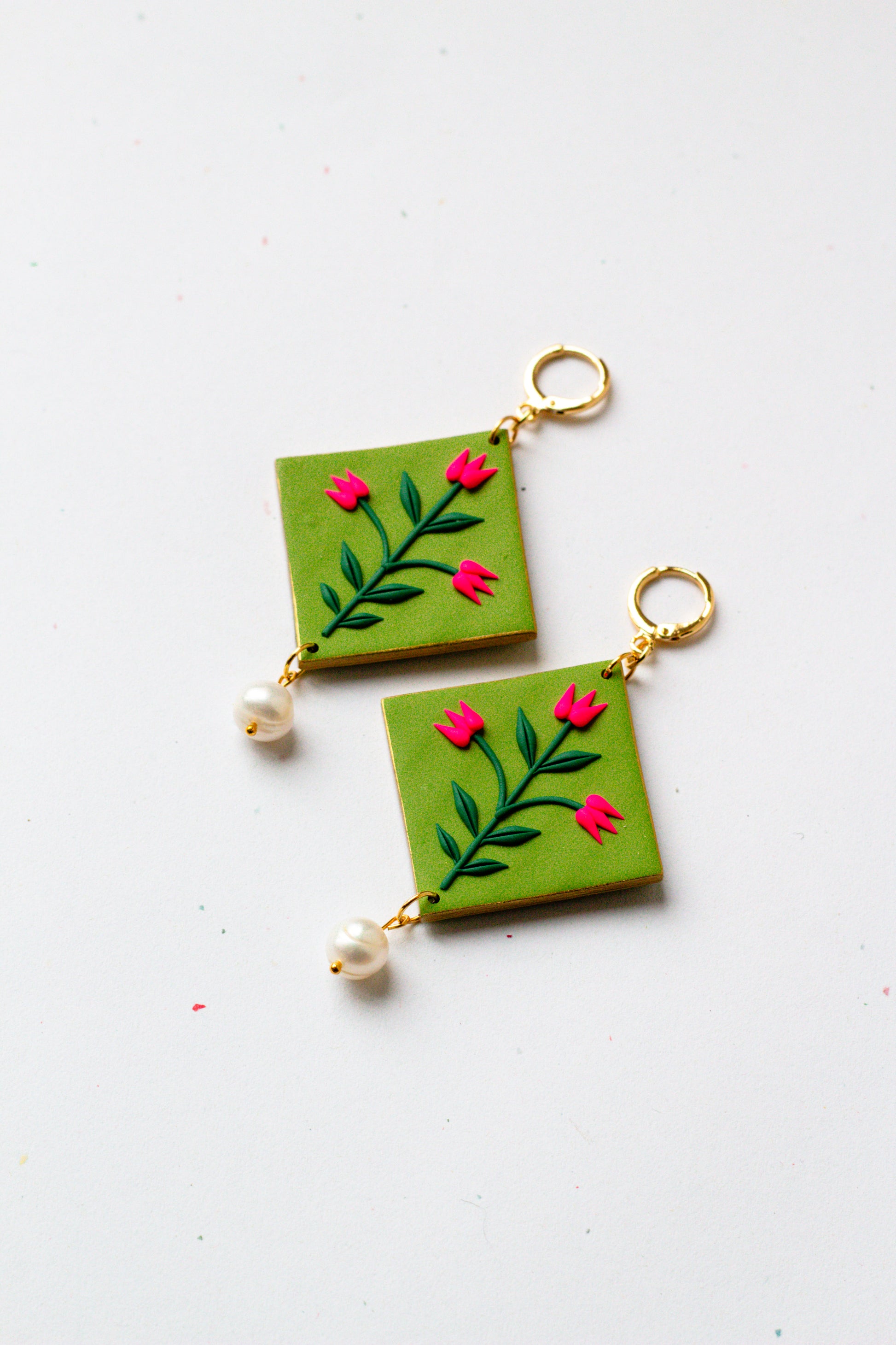 Statement Polymer Clay Tulip Huggie Earrings - Olive Green