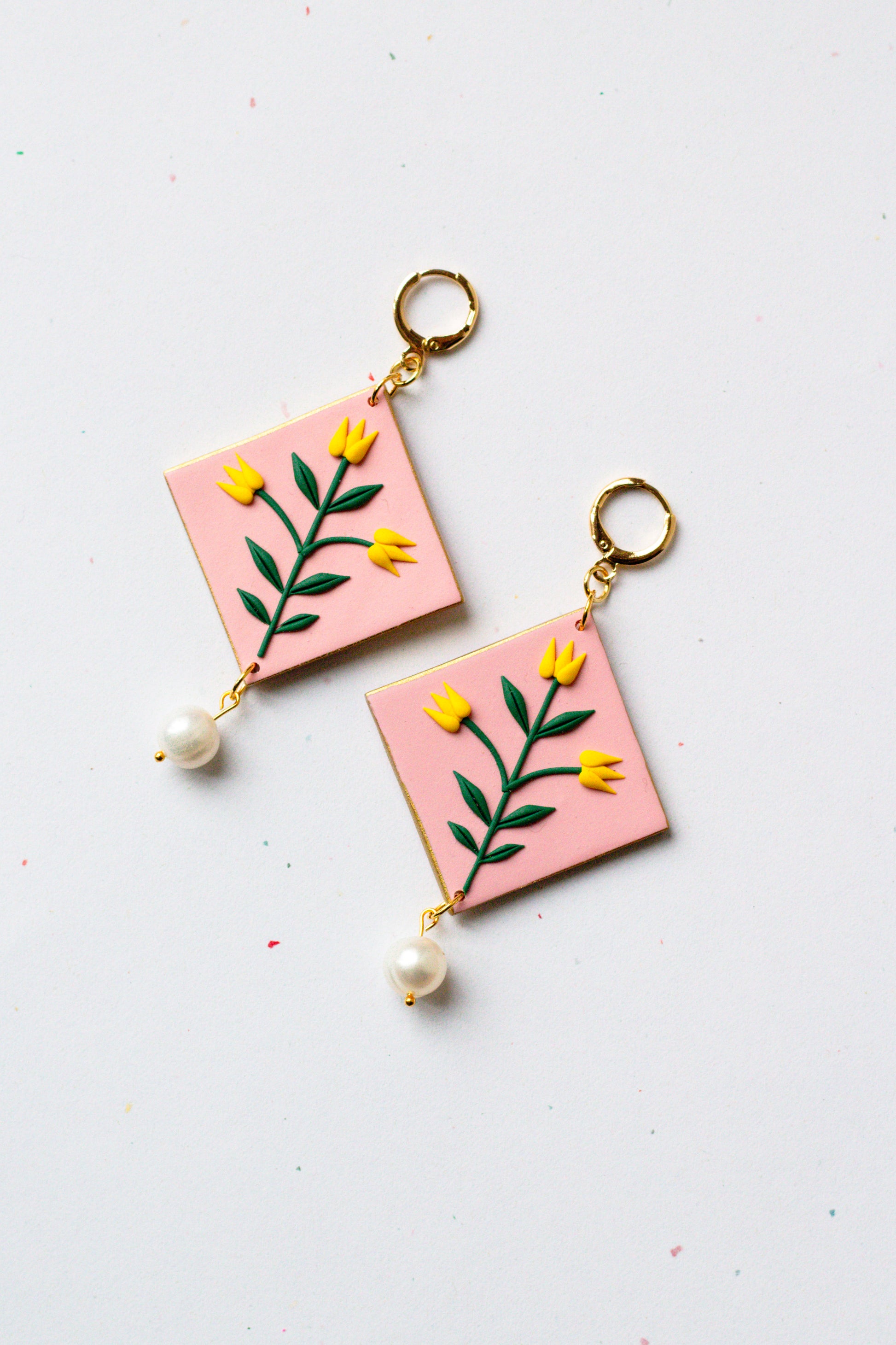 Statement Polymer Clay Tulip Huggie Earrings - Pink
