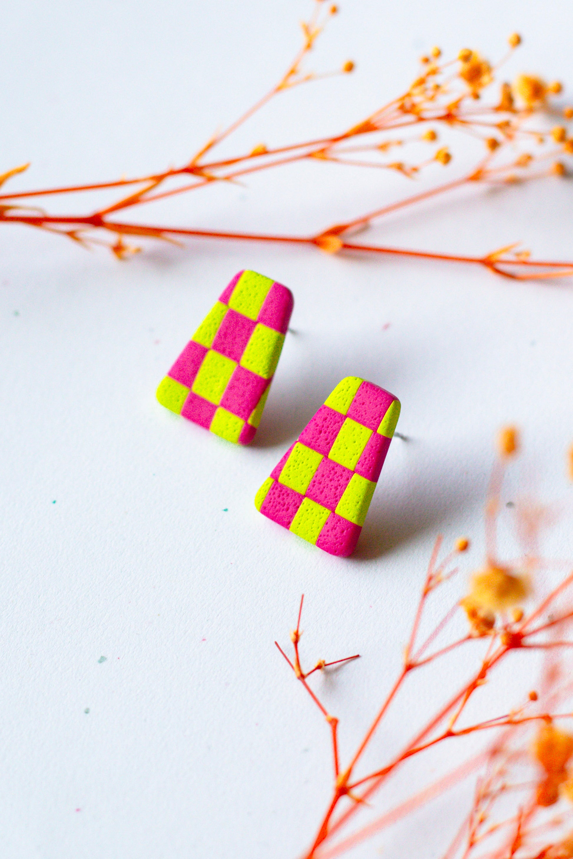 Checkerboard Textured Studs // Chartreuse & Magenta