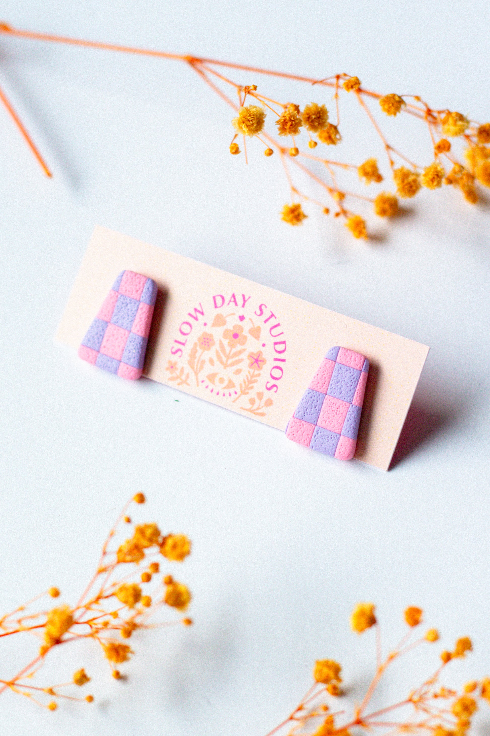 Textured Studs //Pastel Pink & Purple Checkerboard